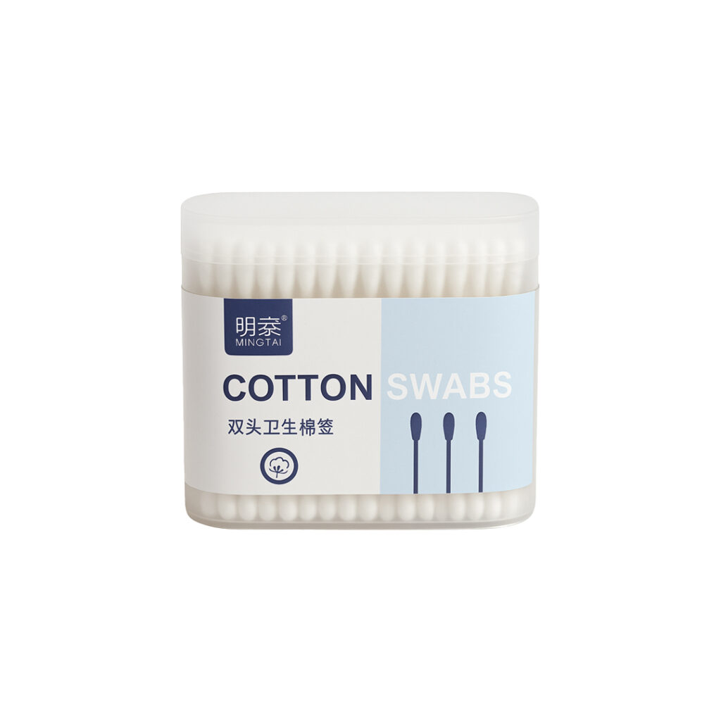 Shkopinj të dyanshëm me pambuk të pastër për përdorim të përditshëm. Praktikë për pastrimin e veshëve apo aplikime kozmetike.