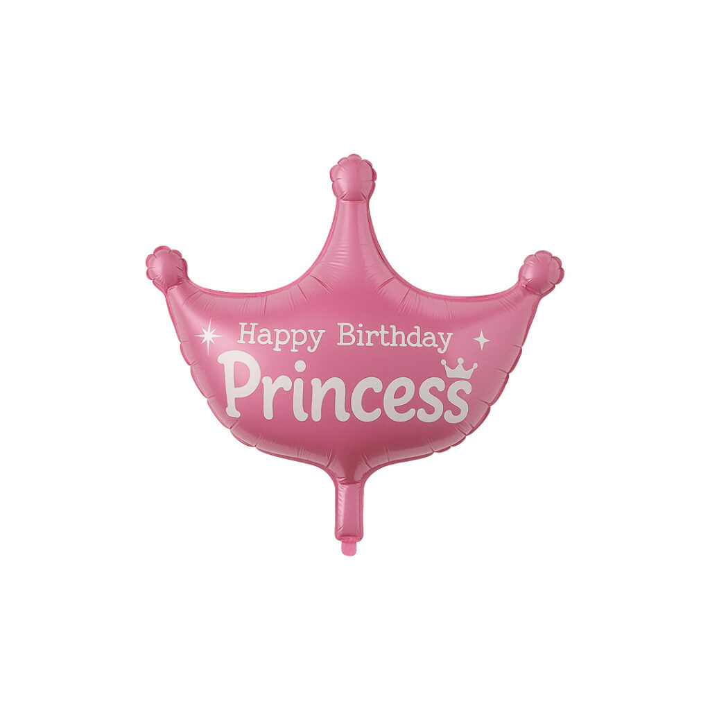 Balonë në formë kurore me mbishkrimin “Happy Birthday Princess”. Ideale për ditëlindjet e vajzave, me ngjyrë rozë të butë dhe shkëlqim që e bën dekorimin më magjik.