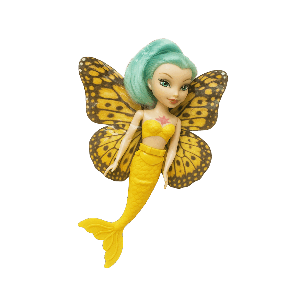 Kukull sirenë me krahë fluture, me ngjyrë të verdhë të ndritshme dhe flokë jeshilë. E punuar nga material plastik i lehtë dhe i sigurt për fëmijët, ideale për lojë imagjinative dhe krijuese. Një lodër plot ngjyra që nxit fantazinë dhe sjell gëzim në çdo kohë loje.