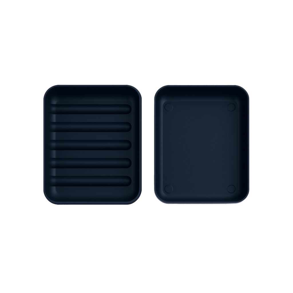 Mbajtëse sapuni me dizajn minimalist dhe material plastik të fortë, rezistente ndaj ujit dhe lagështisë. Pjesa me vija lejon tharjen më të shpejtë të sapunit dhe mban sipërfaqen pa rrëshqitje. Ngjyra blu e errët i shton një stil modern dhe elegant banjos tuaj.