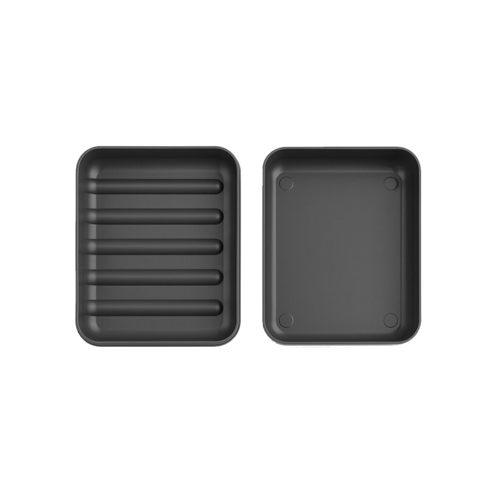 Mbajtëse elegante plastike për sapun, me dizajn praktik që lejon kullimin e ujit dhe mban sipërfaqen e pastër. Materiali i fortë dhe rezistent siguron përdorim afatgjatë, ideale për banjo apo kuzhinë. Ngjyra e zezë i shton një pamje moderne dhe të rregullt ambientit.