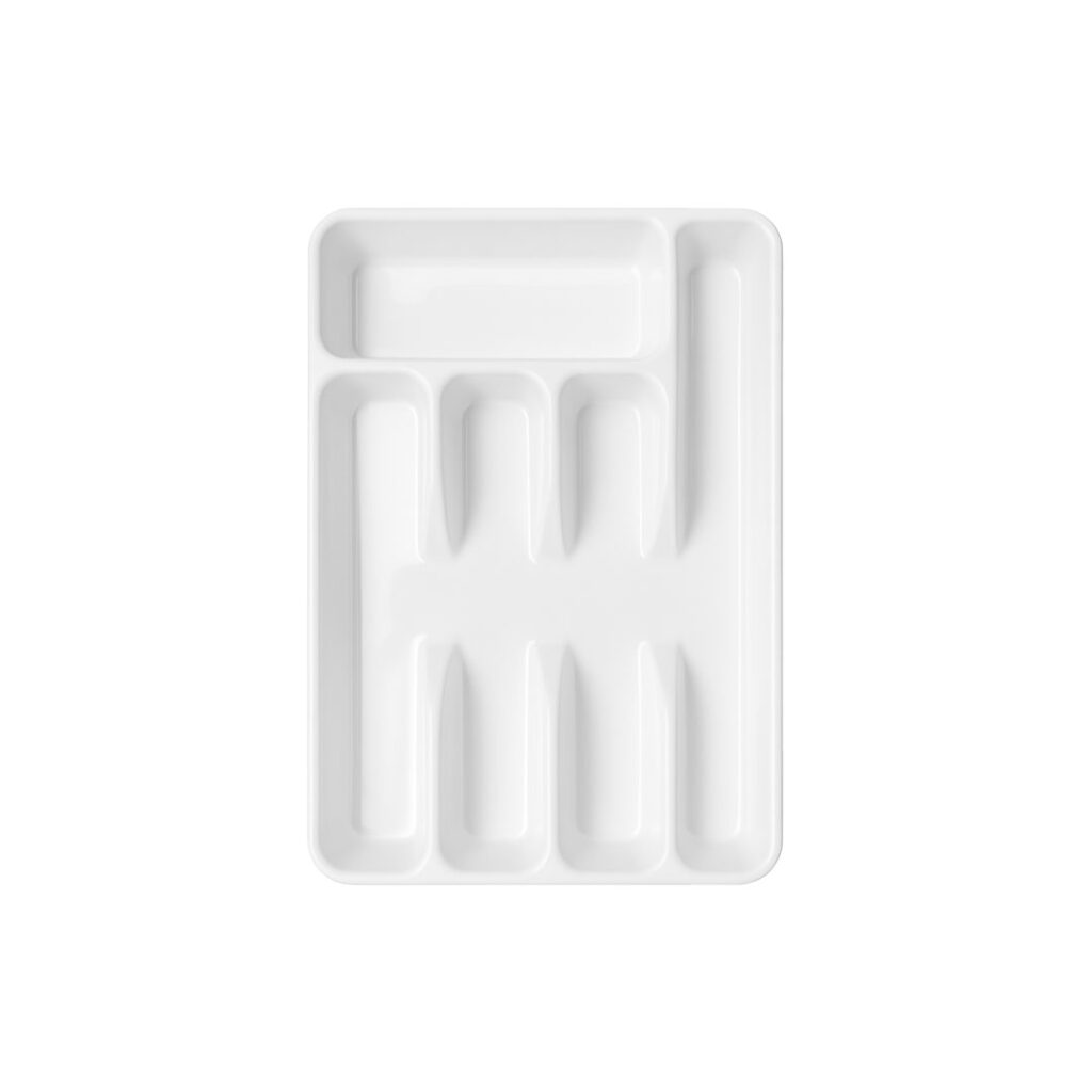 Organizues elegant për sirtarë kuzhine me ndarje funksionale për lugë, pirunë dhe thika. I punuar nga plastikë cilësore dhe rezistente, i lehtë për pastrim dhe shumë praktik për përdorim të përditshëm. Ngjyra e bardhë i jep ambientit pamje të pastër dhe moderne.