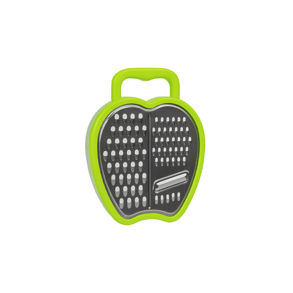 Rende praktike me dizajn unik në formë molle, e përshtatshme për djathë, perime dhe fruta. Ka dorezë të rehatshme dhe tehë të mprehtë për grirje të shpejtë dhe të barabartë. Materiali plastik i fortë dhe çeliku sigurojnë qëndrueshmëri dhe pastrim të lehtë.