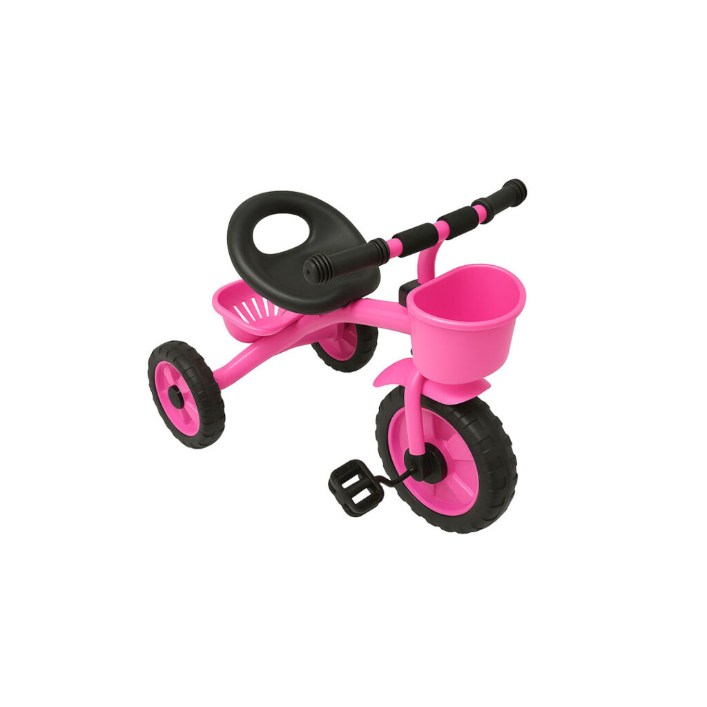 Tricikël i lehtë dhe i qëndrueshëm për fëmijë, i pajisur me pedale dhe shportë praktike për lodra. Dizajni ergonomik siguron rehati gjatë ngasjes dhe zhvillon aftësitë motorike. Ngjyra rozë e gjallë e bën tërheqës dhe argëtues për vajza të vogla.
