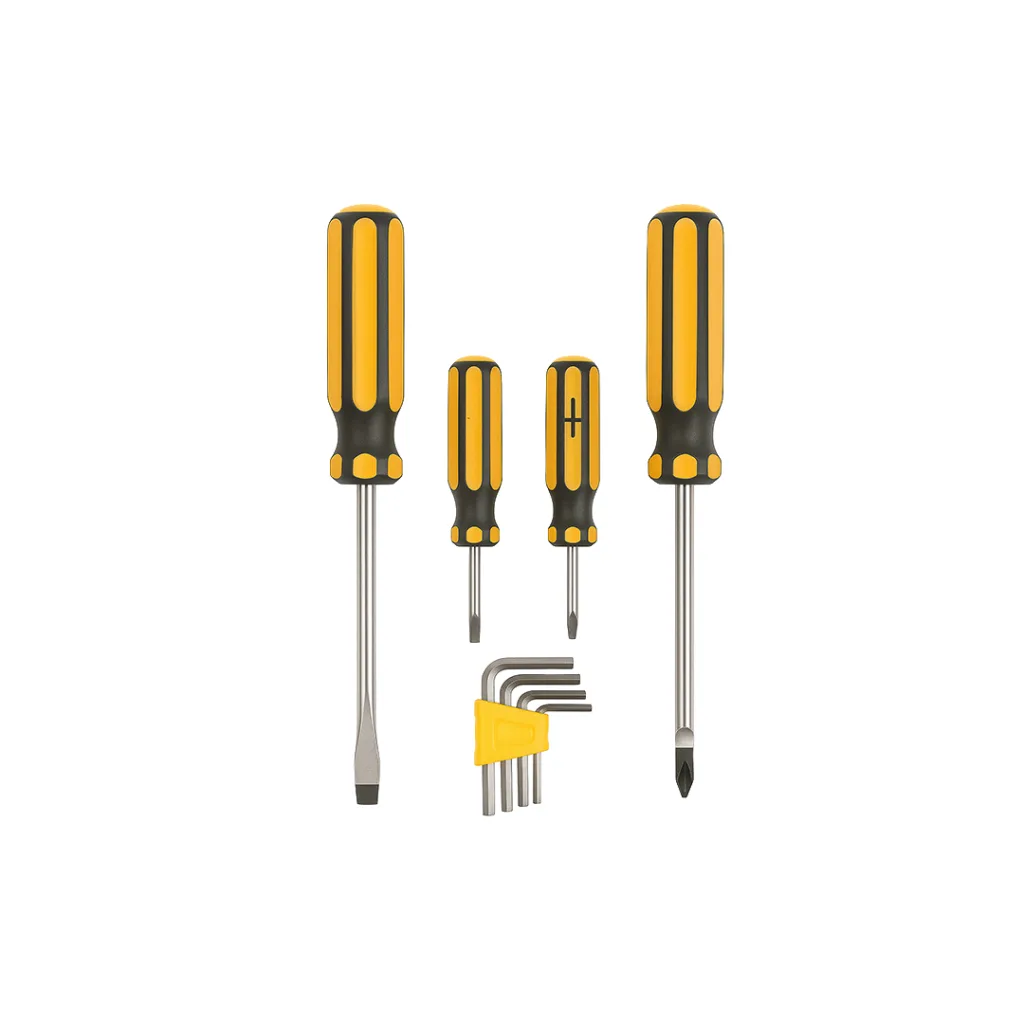 Set shrafcigerësh dhe çelësa imbus, ngjyrë verdhë-zi