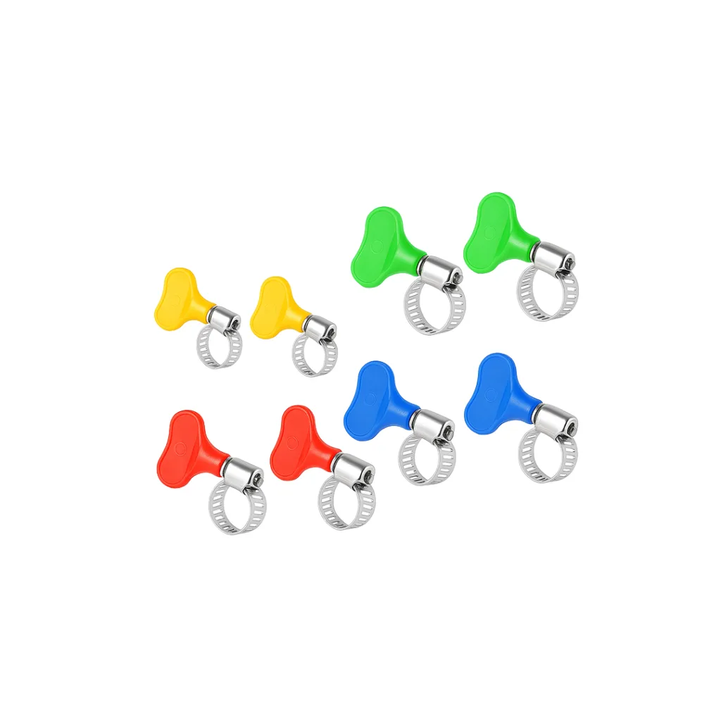 Set shtrëngues metalik për zorrë me dorezë plastike, shumëngjyrëshe